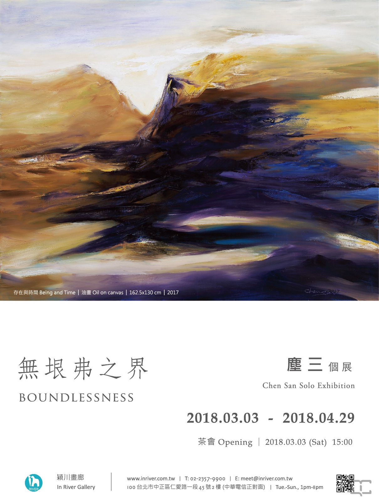 描述:2018年03月03日至2018年04月29日,穎川畫廊舉辦「無垠弗之界──塵三油畫個展」。