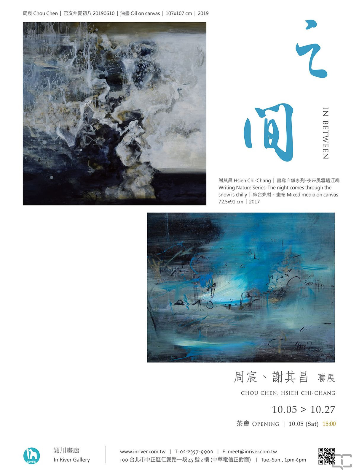 描述:2019年10月05日至2019年10月27日,穎川畫廊舉辦「之間 ── 周宸、謝其昌聯展」。