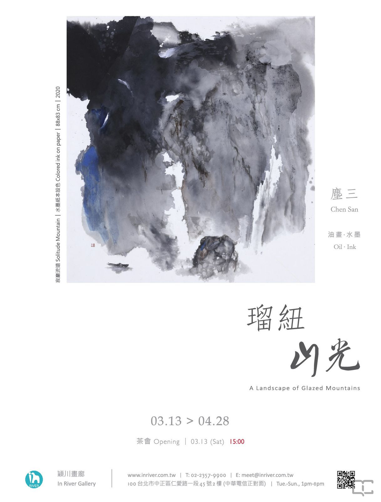 描述:2021年03月13日至2021年04月28日,穎川畫廊舉辦「瑠紐山光 ── 塵三個展」。
