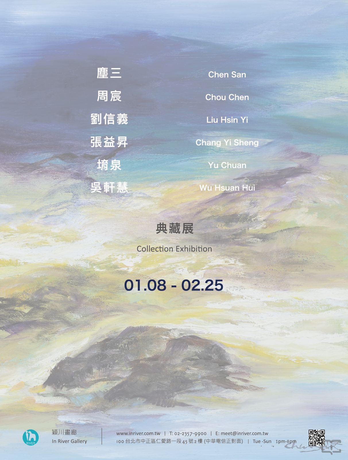 描述:2022年01月08日至2022年02月25日,穎川畫廊舉辦「典藏展──塵三、周宸、劉信義、堉泉、張益昇、吳軒慧聯展」。