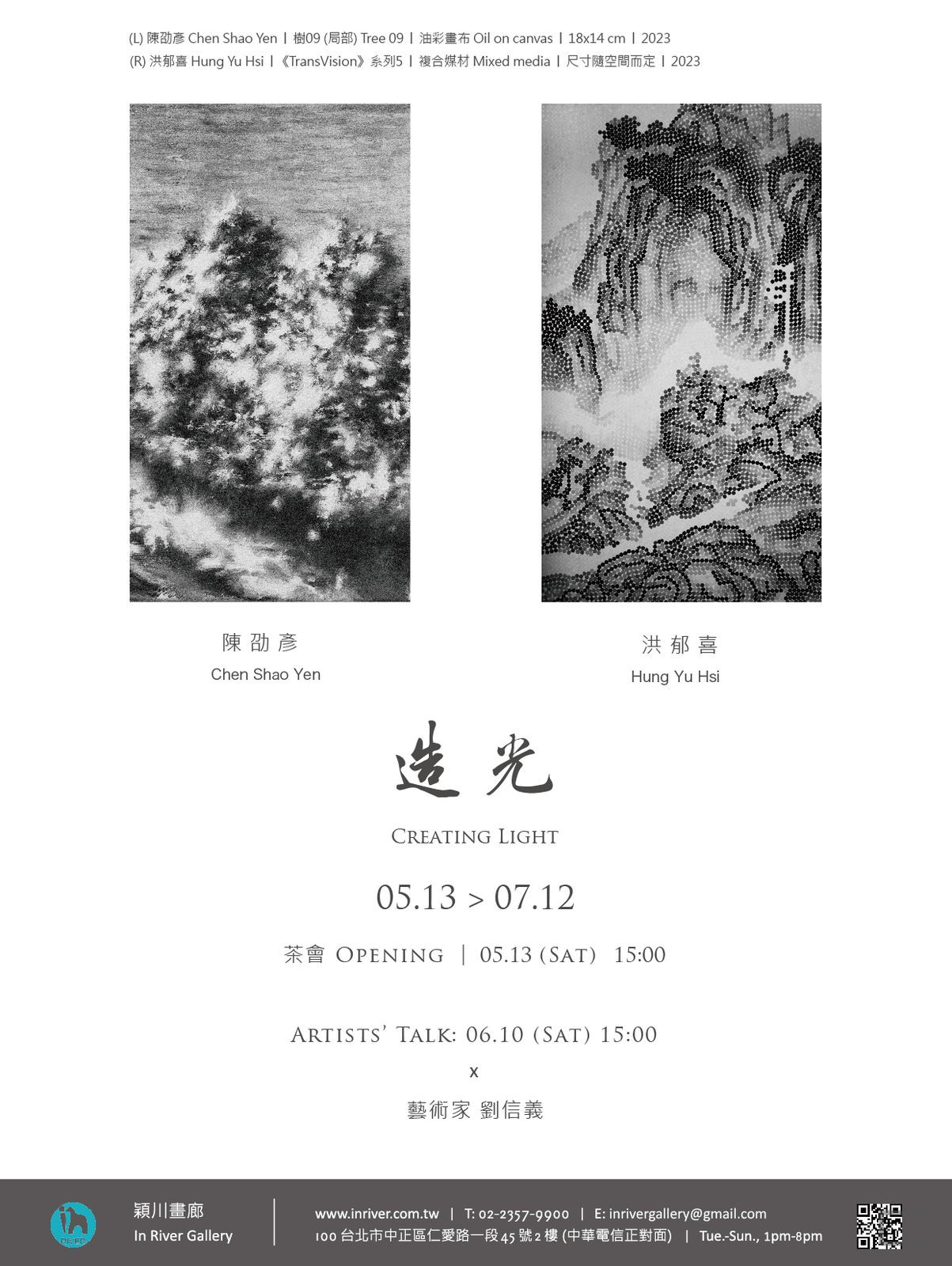 描述:2023年05月13日至2023年07月12日,穎川畫廊舉辦「造光──陳劭彥、洪郁喜聯展」。