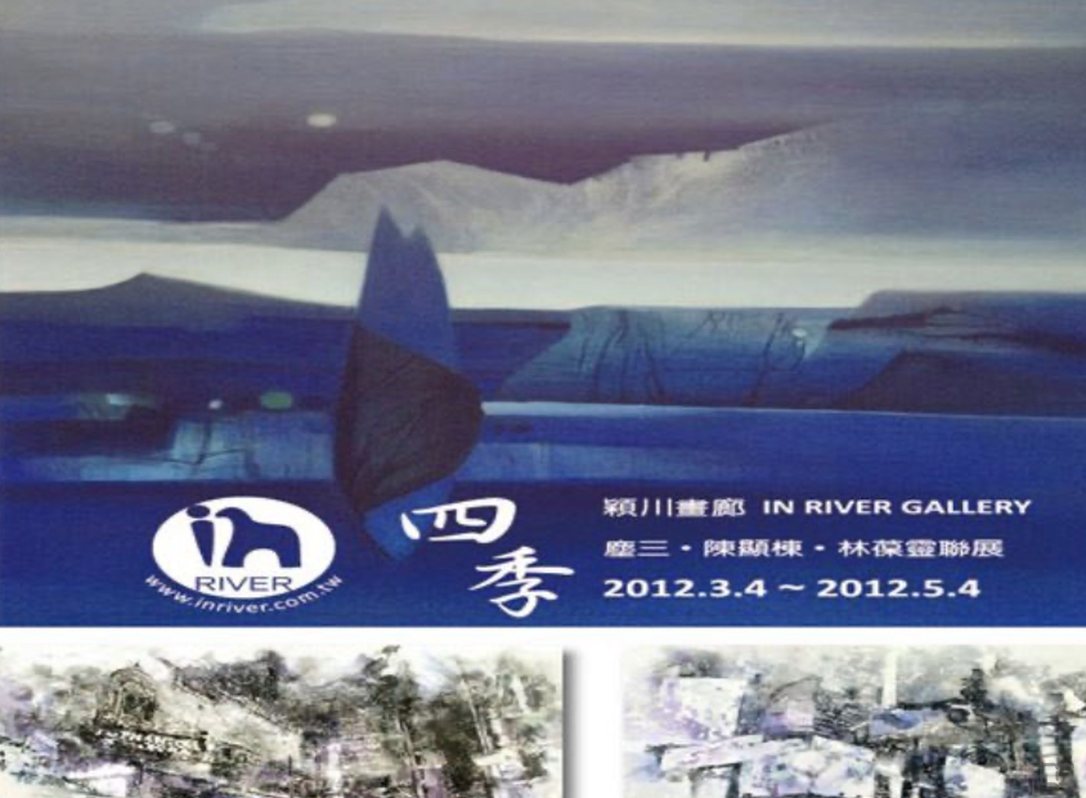 描述:2012年03月04日至2012年05月04日,穎川畫廊舉辦「2012四季聯展──塵三、陳顯棟、詹金水、林葆靈」。